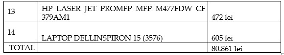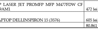 Prețurile individuale prevăzute în tabelul de mai sus, reprezintă 90% din valoarea bunurilor cuprinse în raport.