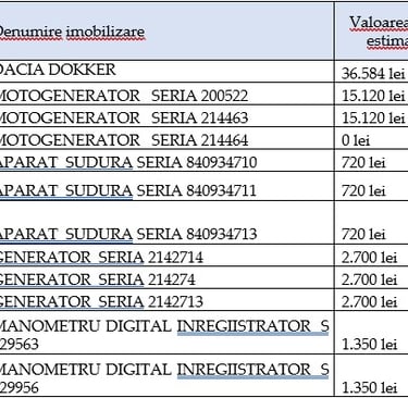 Bunurile pot fi vândute în bloc sau individual, în funcție de ofertele primite, la prețul stabilit per ansamblu sau individual (în funcție de tipul vânzării), în raportul de evaluare depus la dosarul cauzei, întocmit de expertul Treeroiu Rareș, desemnat de creditori.