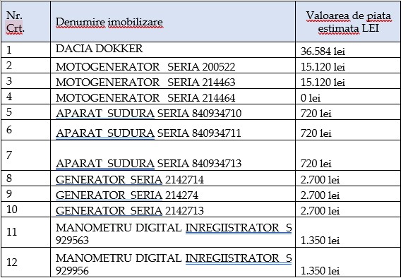 Bunurile prevăzute în secțiunea ”Echipamente tehnologice (masini,utilaje)” se regasesc în localitatea Dragodana nr. 486 (177 nou) jud. Dâmbovița.